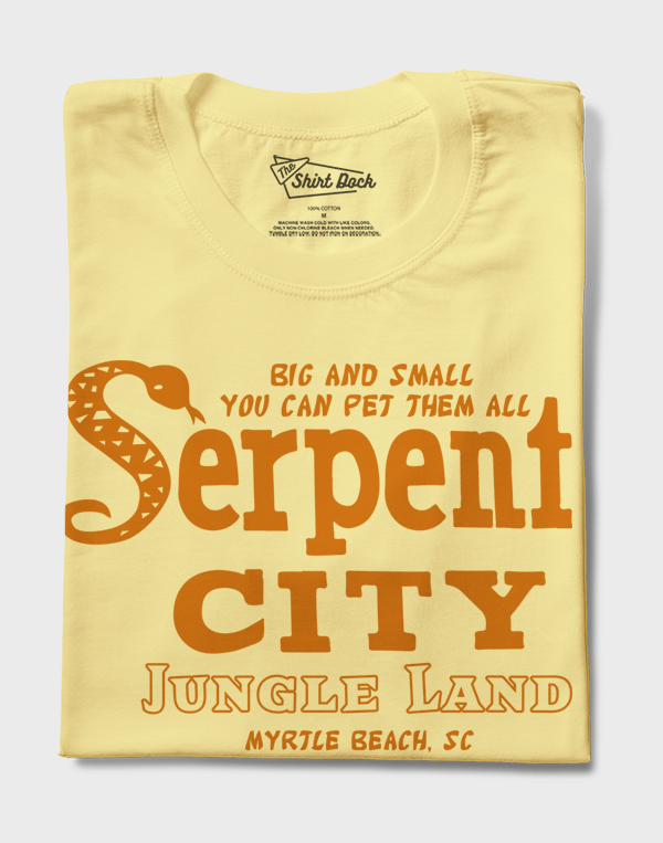 A tribute to the classic era of Myrtle Beach attractions that once were. Serpent City Jungle Land is long gone but remembered fondly by many. Vintage look.